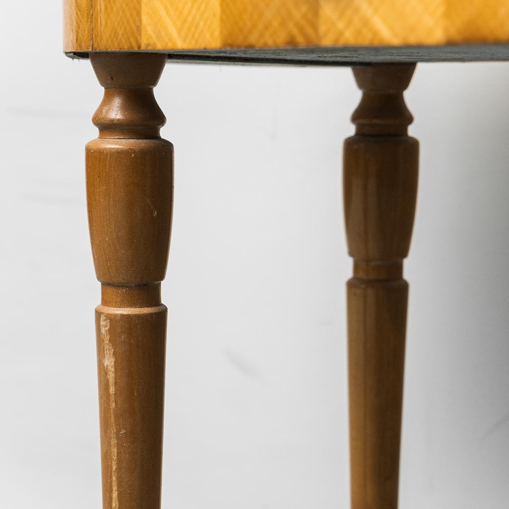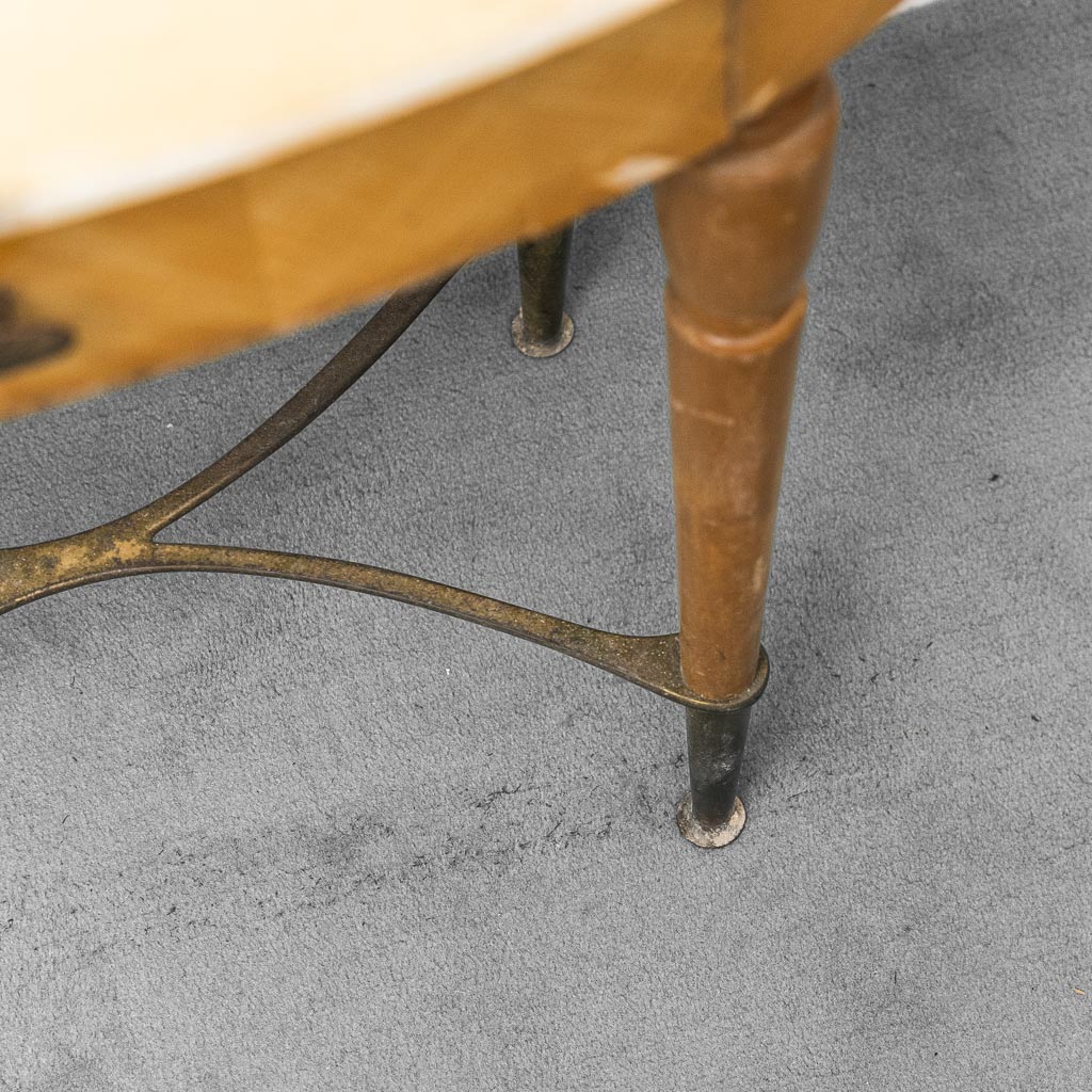 Conditions: Buone condizioni, segni del tempo e usura visibile sul marmo e sulla superficie lignea coerenti con l’età.