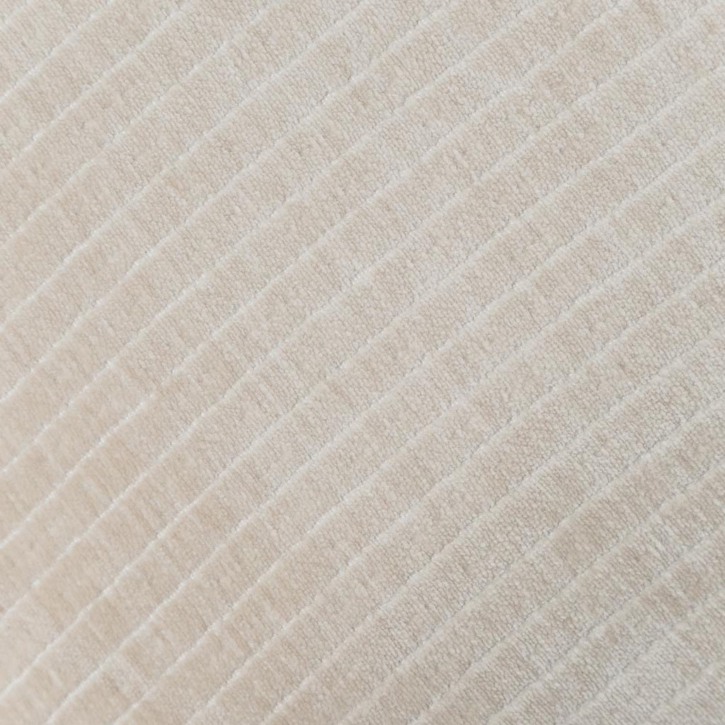 Pouf dalla caratteristica forma a mezzaluna, realizzato con imbottitura morbida e rivestimento in tessuto beige chiaro. La struttura poggia su piccoli piedini in legno, che donano stabilità e un tocco di calore materico al design complessivo. Le proporzioni compatte e la forma sinuosa lo rendono un complemento versatile, ideale sia come poggiapiedi che come seduta aggiuntiva.