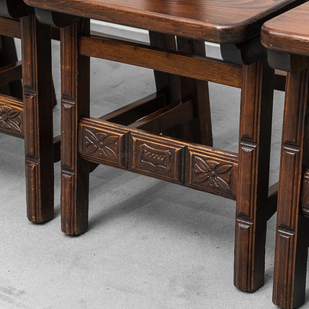 La traversa inferiore, con intagli geometrici tipici della tradizione scandinava, arricchisce ulteriormente il loro aspetto, rendendole perfette per ambienti sia rustici che sofisticati.