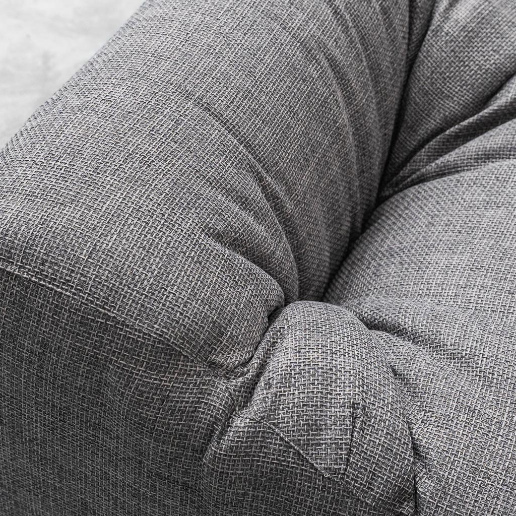 Le forme morbide e basse, unite alle imbottiture generose, offrono un comfort informale e contemporaneo. Il rivestimento in tessuto grigio dona equilibrio e versatilità, rendendole perfette sia come sedute singole sia accostate in una composizione modulare più ampia.