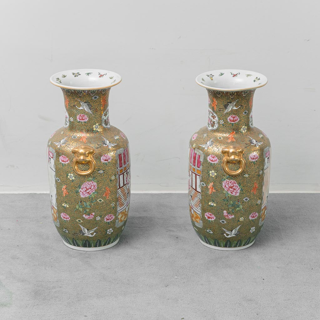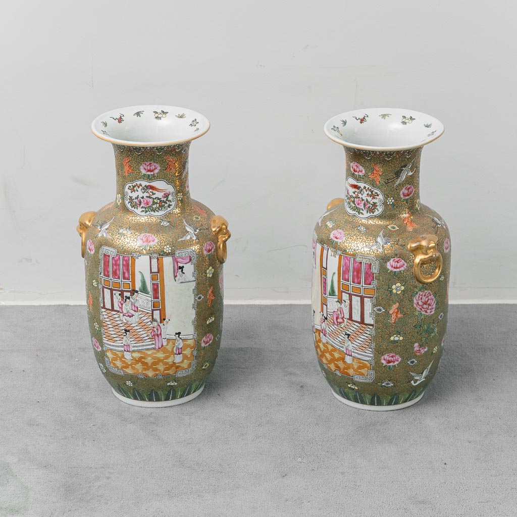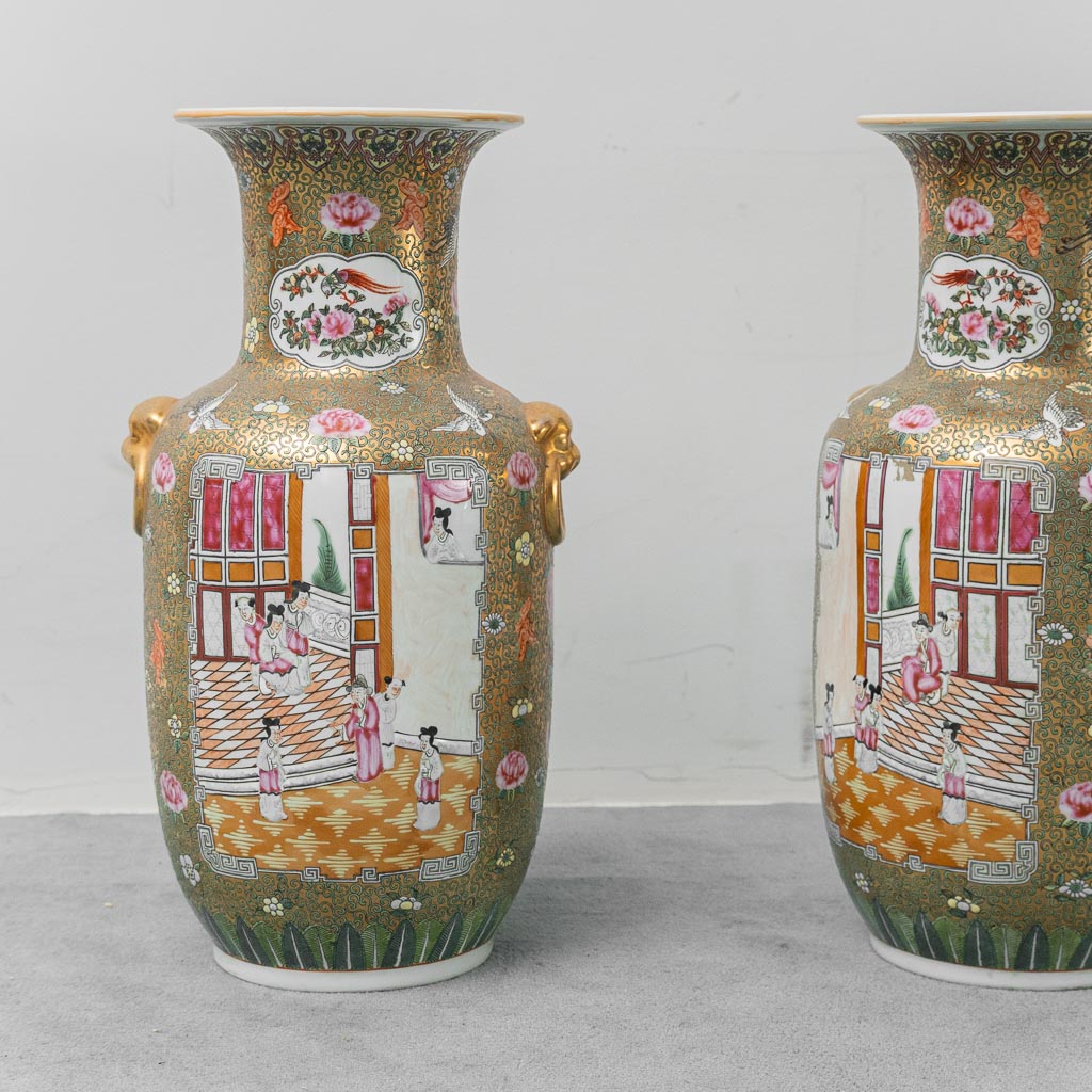 Coppia Vasi Cinesi Vintage in Porcellana Decorata – Motivi Orientali Policromi