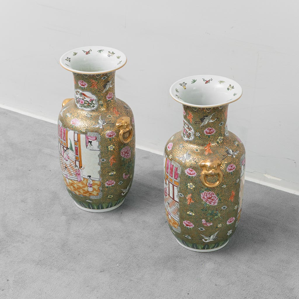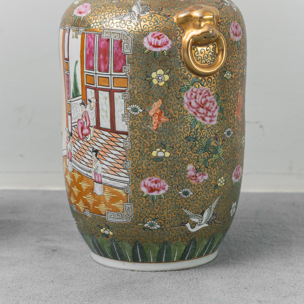 Elegante coppia di vasi cinesi vintage in porcellana decorata a mano.