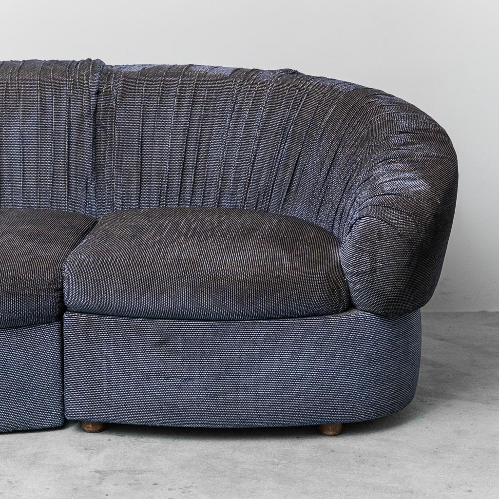 Divano 4 posti modulare tessuto blu anni ’70 vintage modernariato