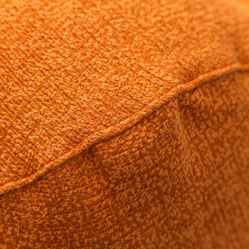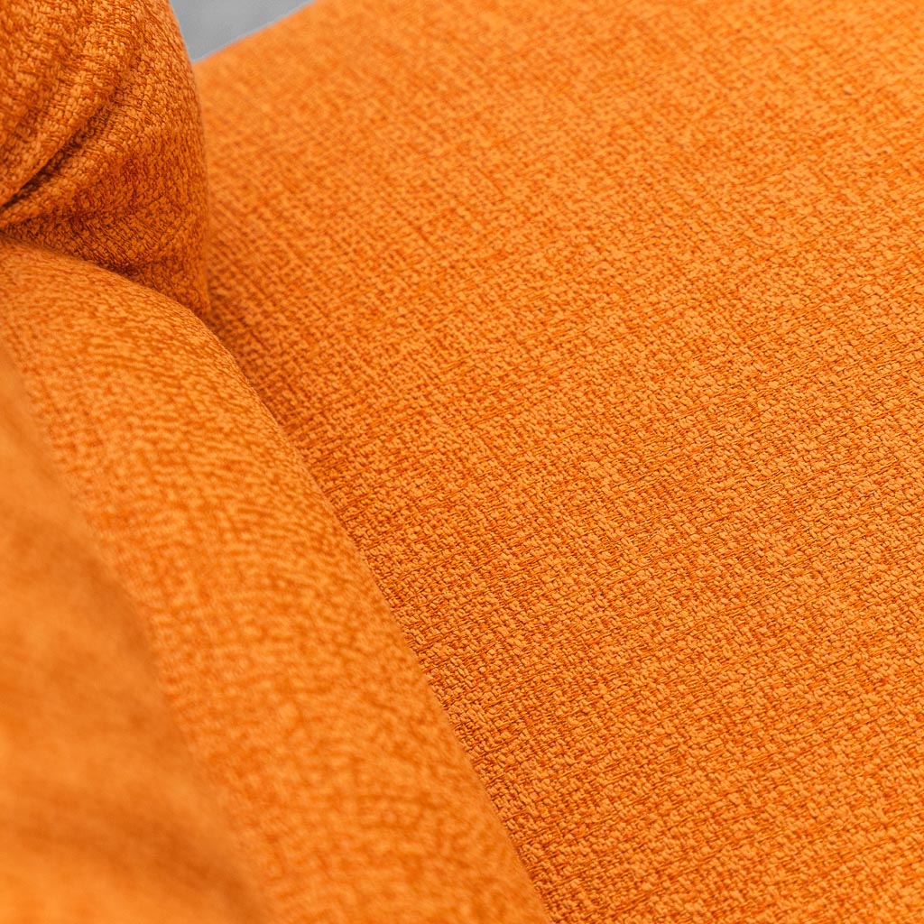 La composizione modulare offre flessibilità d’uso, mentre il rivestimento in tessuto arancione dona energia e personalità all’ambiente. Perfetto per living contemporanei, loft creativi, spazi contract o interni dal gusto vintage e pop.