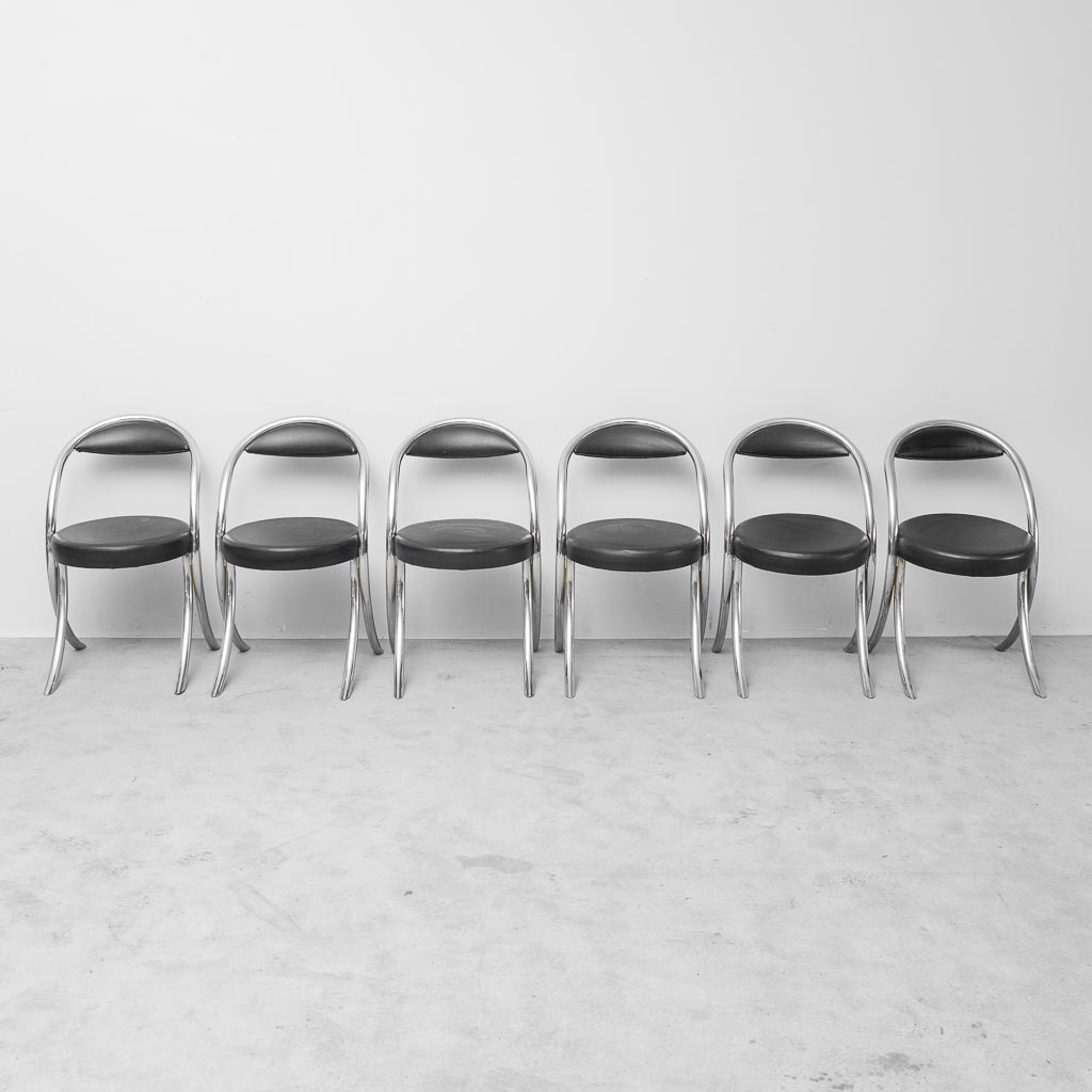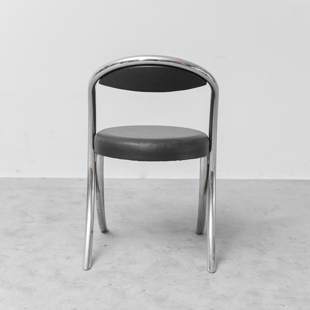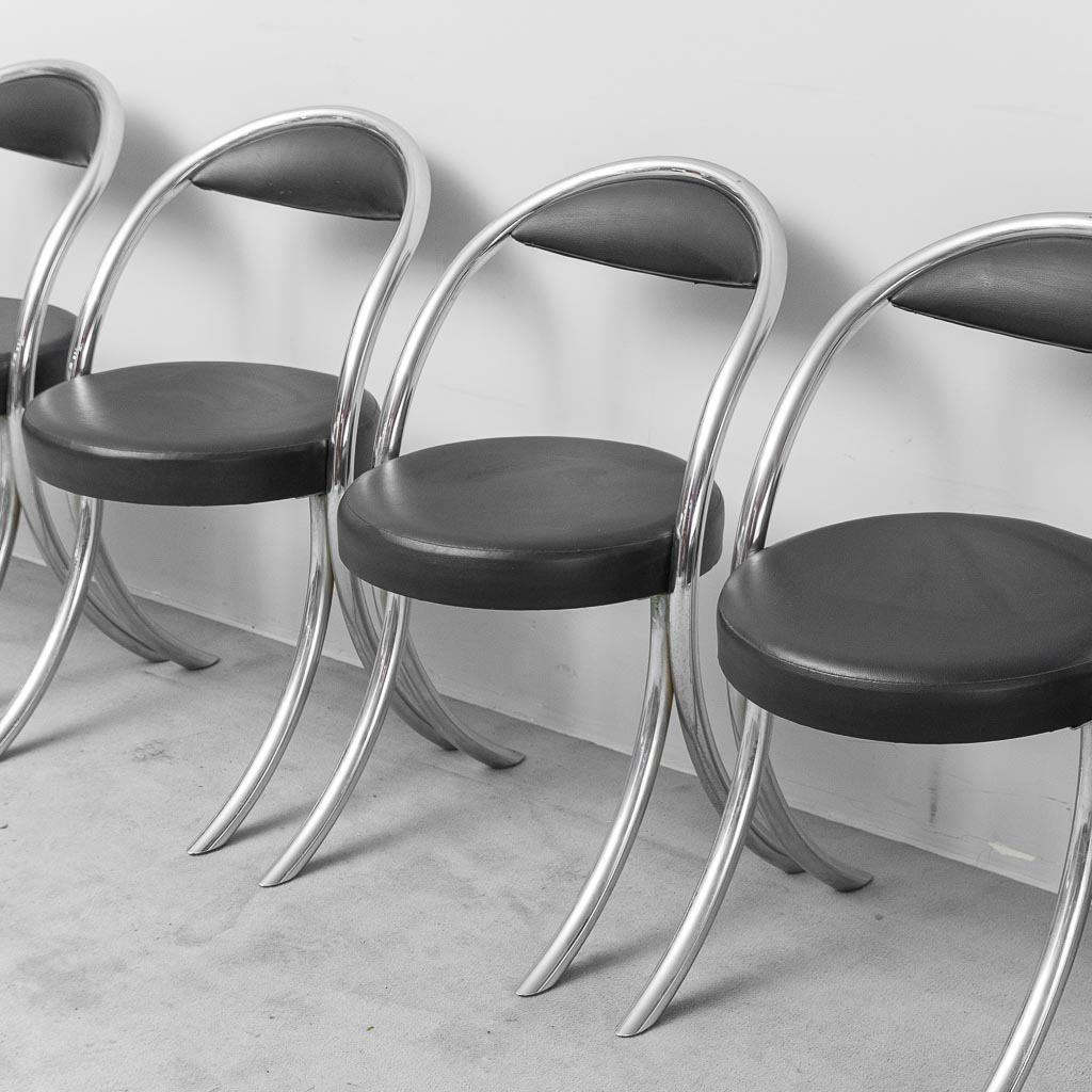 Set 6 sedie vintage stile Giotto Stoppino anni ’70 – sedie design cromate ecopelle nera